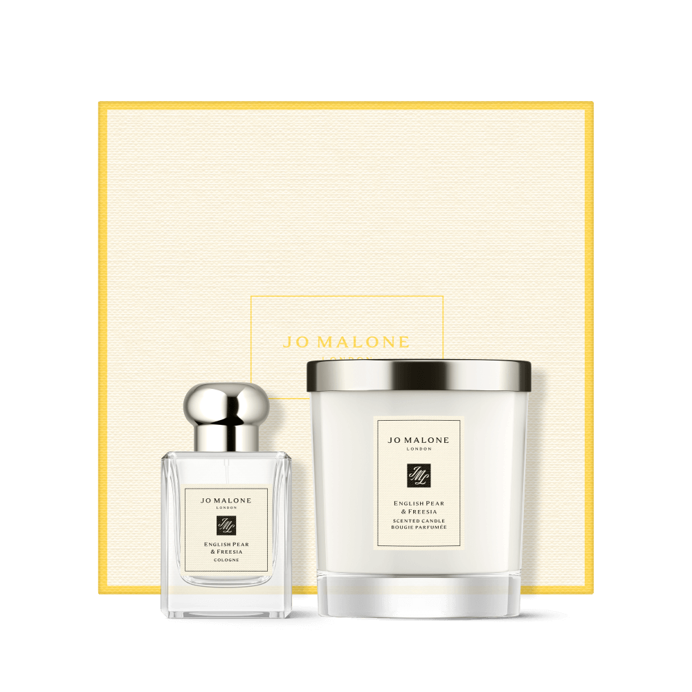 The Pear-fect Gift set - create an indulgent new ritual with English Pear & Freesia, our fruity signature fragrance. Just-ripe pears, wrapped in a bouquet of white freesias. Fill the room with orchards steeped in golden sunshine. Crafted in the British countryside in a signature glass design.